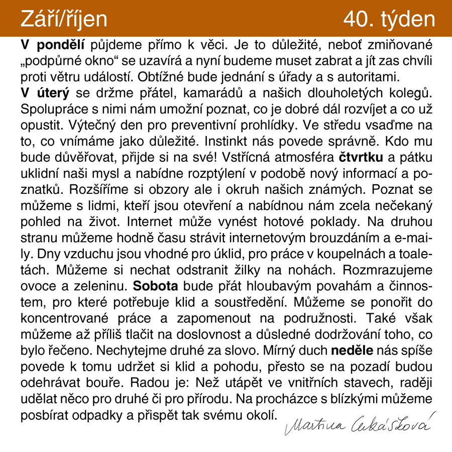 Držme si klobouky, září bylo rušné a říjen nás zas o moc nezpomalí. Uvědomme si, že naše srdce dobře ví, jak se vším tím, co kolem nás je, prodrat. Jo, láska… Vše dobré váš Marluk