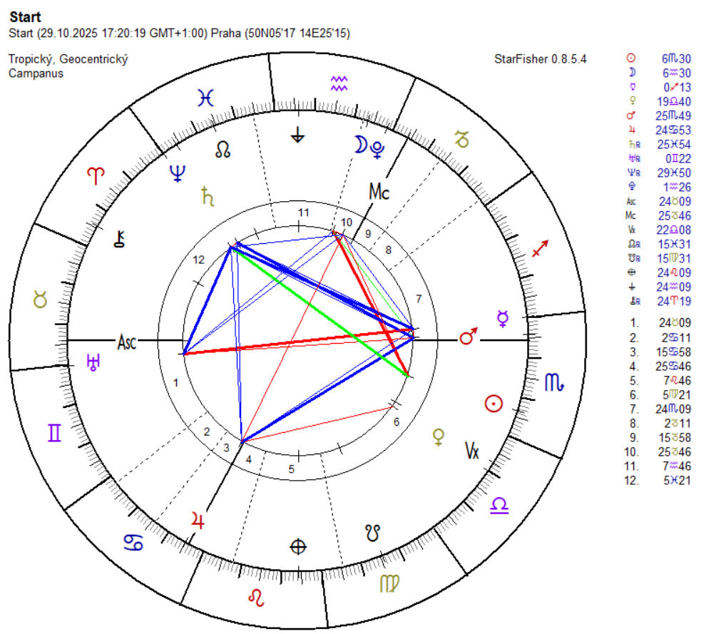 Podíváme-li se na věc blíž, zjistíme, že rozběžná kvadratura (úhel 90°) vyvolává tlak na nutnost jednat i přestože, je zakoušeno značné vnitřní napětí. Je to rozpor mezi enormní motivací jednat a úzkostí z dopadu dané akce. Představit si to můžeme jako bychom měli chuť se rozběhnout a ve chvíli, kdy zvedneme nohu a celý organismus se rozhýbe ve směru pohybu, si uvědomíme, že běžíme po minovém poli. Možná proběhneme, možná šlápneme na minu… Je to samozřejmě extrémní příklad, ale pokud si ho představíte (viz film Sirat, který vřele doporučuji), uvědomíte si riziko, které se v rozběžné kvadratuře skrývá. Je to riziko toho, jak daná akce dopadne. Nikdo nevím, zda úspěchem či neúspěchem. Není čas na přemýšlení, musí se jednat, riskovat potenciální neúspěch a zároveň se plně vztahovat k pomyslnému cíli – k úspěchu. Prostě k tomu, že nám to vyjde, že to dáme.