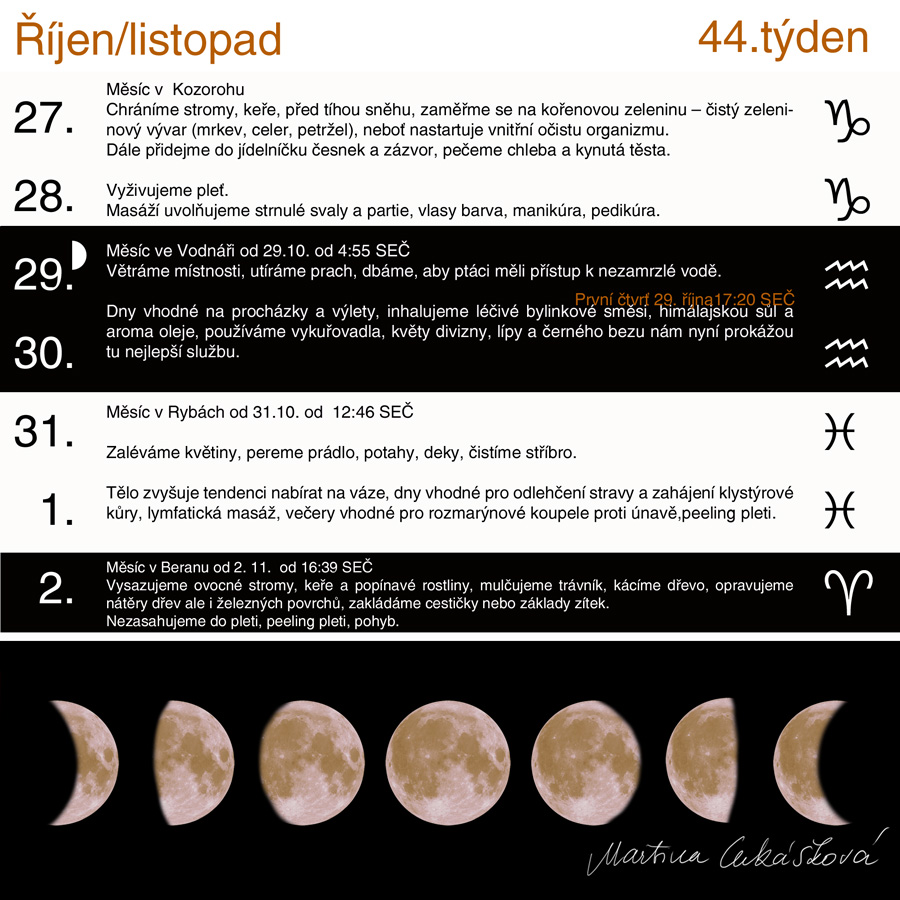 Nuže, je tu týden, který svými procesy má potenciál oddělit uvnitř nás plevy od zrn, za předpokladu, že se nelekneme a nezalezeme s hlavou pevně zabořenou do písku. Měli bychom si uvědomit, že můžeme mnohé dokázat, ale zas dávat pozor, abychom neskočili na lep obecnému tlaku na výkon. Ponořit bychom se měli také do ticha a soustředěné práce, otevřené mysli, neb nám mohou dojít souvislosti nebo můžeme pochopit něco, o čem jsme poslední dobou sbírali informace. Prostě proniknout do systému – knihy, jazyka, myšlení, zájmové činnosti…dosaďme si, co je komu libé.