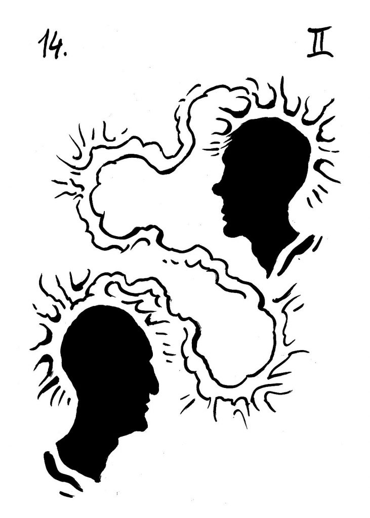 LUNA – Blíženci 14°: DVA LIDÉ SPOLU TELEPATICKY KOMUNIKUJÍ A PŘEKLENUJÍ TAK FYZICKÝ PROSTOR A SPOLEČENSKÉ ROZDÍLY