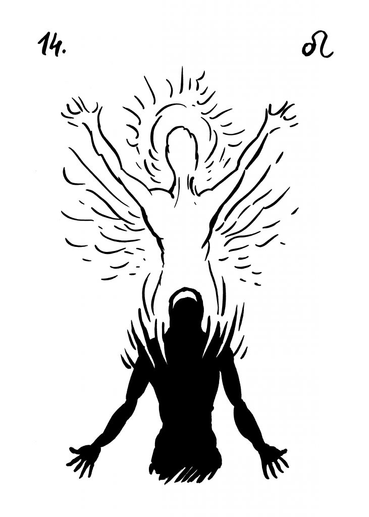 Sabiánské symboly pro úplněk jsou tedy výzvou pro ty, kteří chtějí pohlédnout za oponu dění: Luna (co je třeba dělat) – Lev 14°: LIDSKÁ DUŠE HLEDÁ PŘÍLEŽITOSTI, JAK SE PROJEVIT NAVENEK
